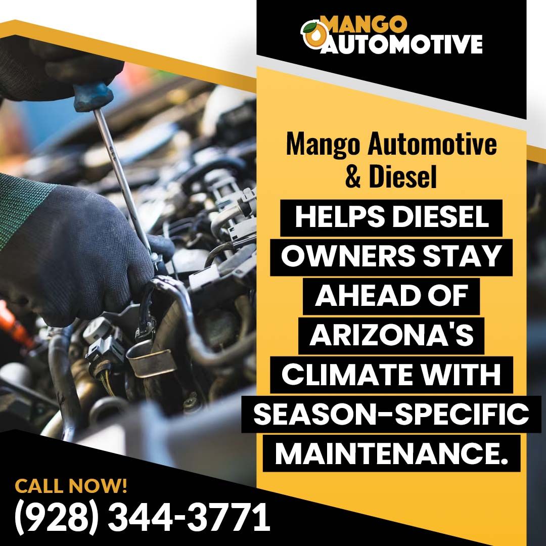 Mango Automotive & Diesel provides diesel maintenance and repair services tailored to Arizona’s demanding climate. Our team evaluates each vehicle based on current condition, usage patterns, and seasonal stress factors to determine appropriate service recommendations.
