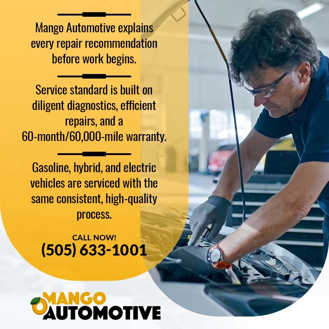 When your vehicle needs attention, you should not have to settle for a shop that falls short on communication, quality, or follow-through. At Mango Automotive, we have built every part of our service around giving drivers a better experience from the first inspection to the final repair. Call us today at (505) 633-1001 to schedule your appointment. Our team is ready when you are.